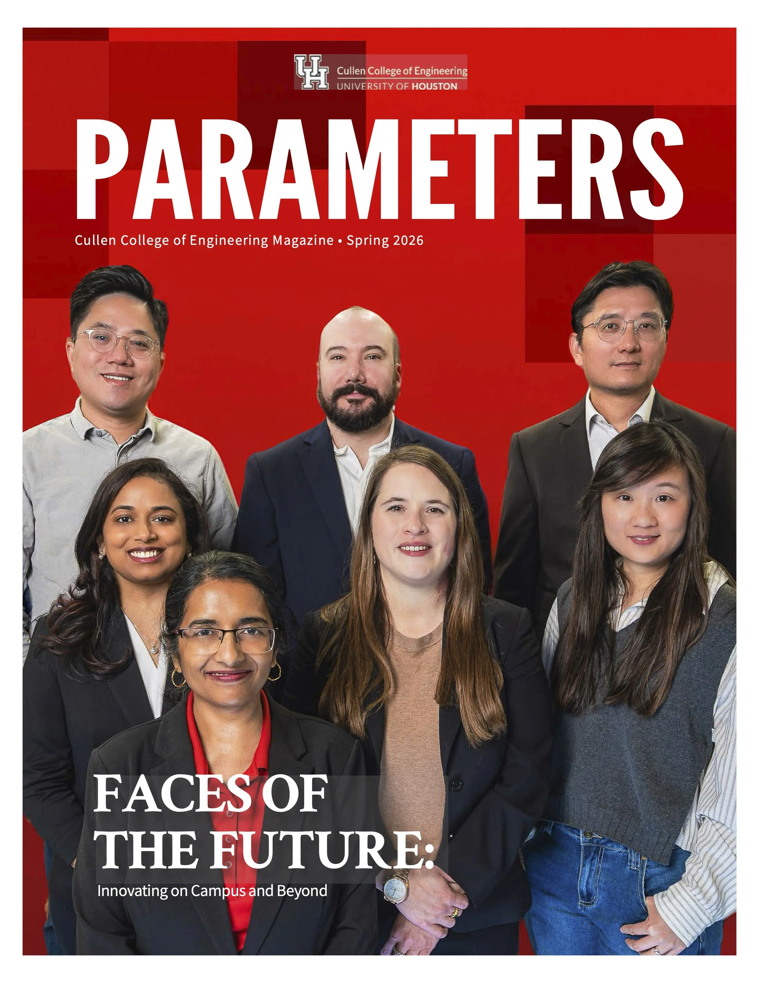 The Spring 2026 issue of Parameters magazine from the Cullen College of Engineering at the University of Houston. The issue features profiles of seven early career faculty, including Dr. Andrew Nordin.