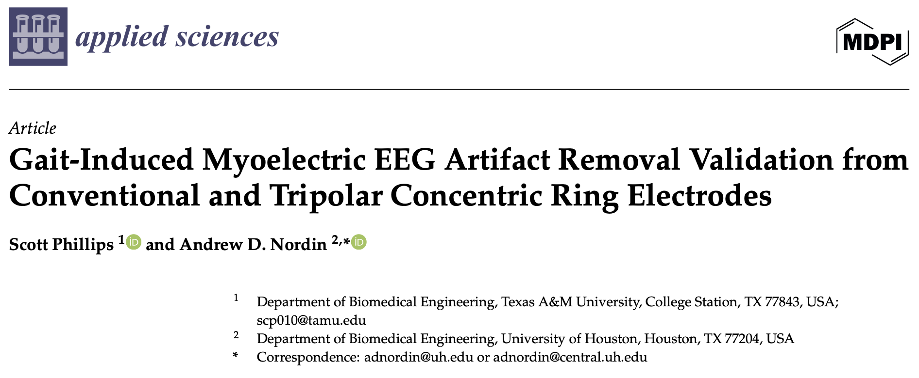 We used tripolar concentric ring electrodes to recover simulated brainwave activity from a fake human head in the presence of signal contaminating electrical neck muscle activity during walking. Tripolar concentric ring electrodes have three concentric rings on each electrode that enable noise cancellation through subtraction between each ring. We identified improved noise removal from tripolar concentric ring electrodes compared to conventional electrodes.